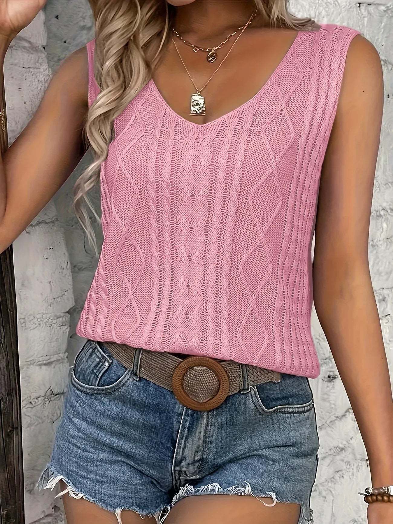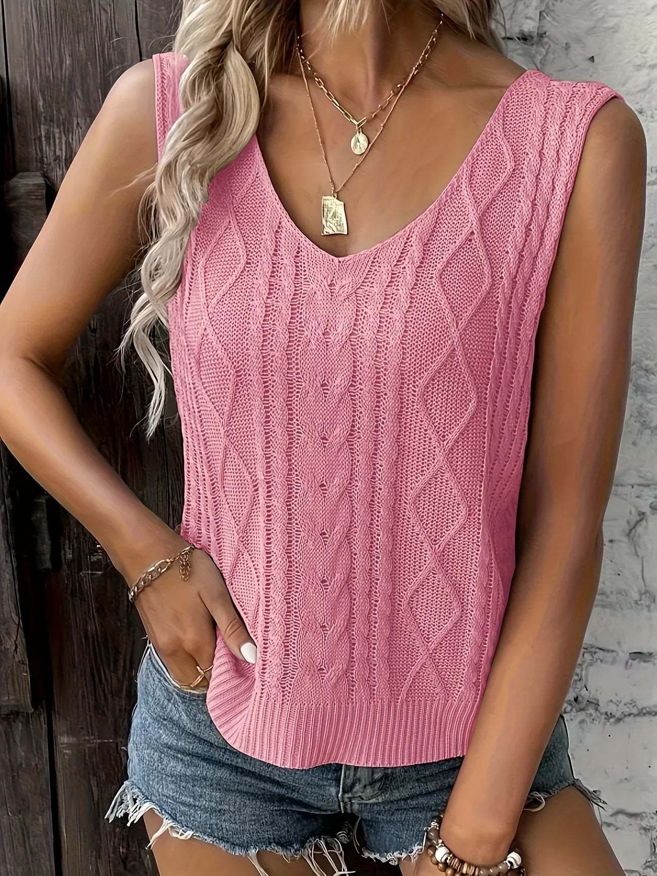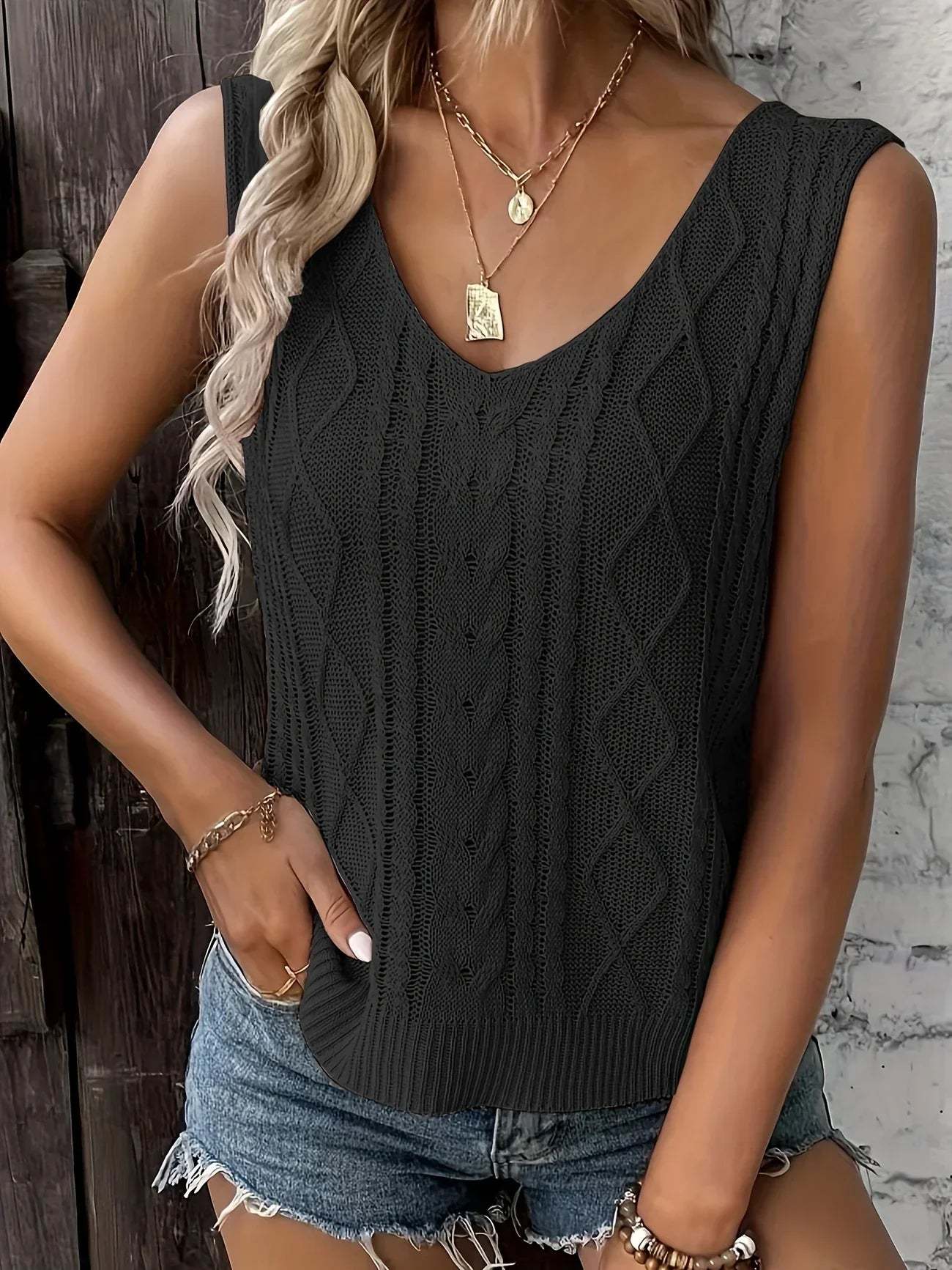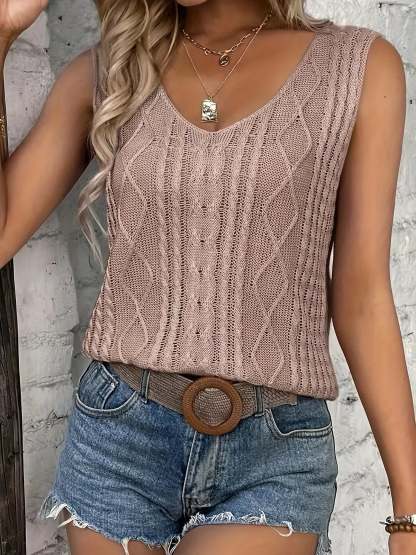 Top Sans Manches En Maille Avec Décolleté En V