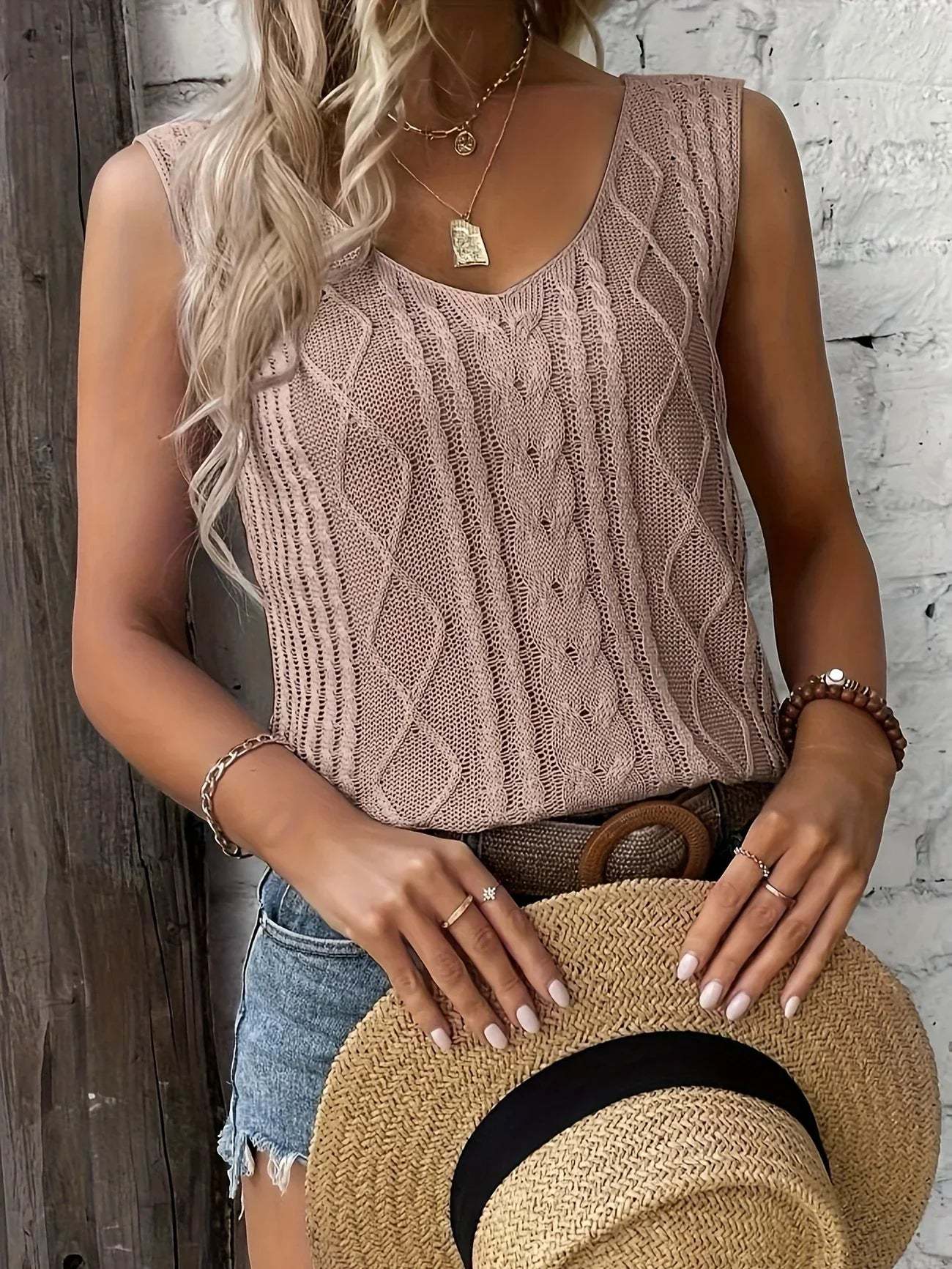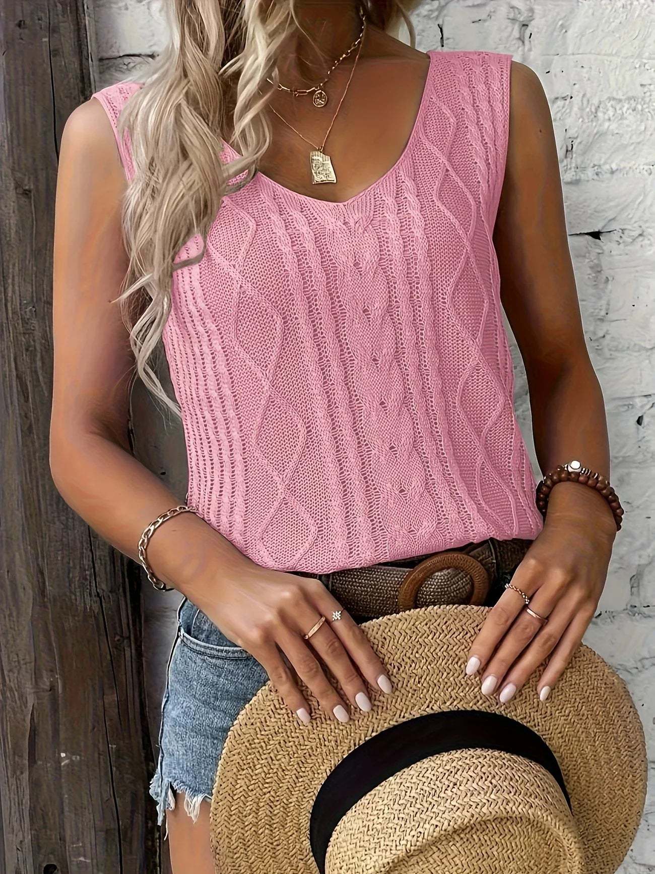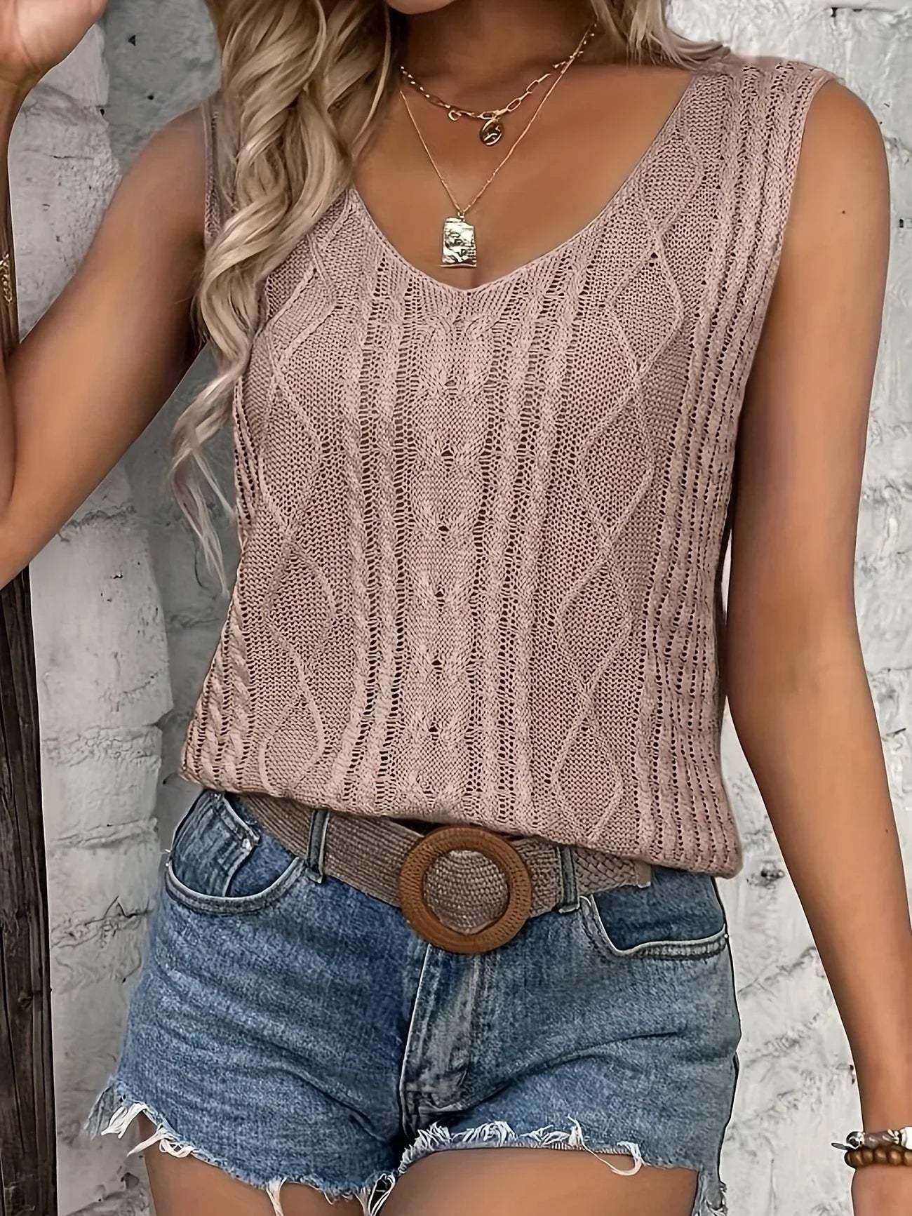 Top Sans Manches En Maille Avec Décolleté En V